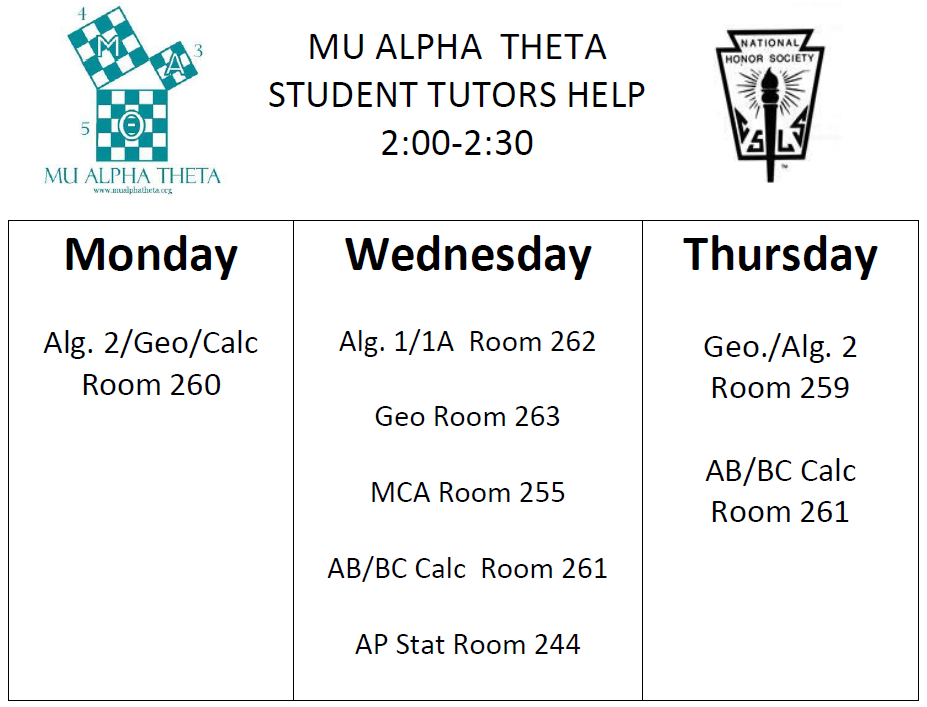 - Math - Ms. Rodriguez (Portable 5) on Mondays, Mr. Martens (Room 226) on Thursdays