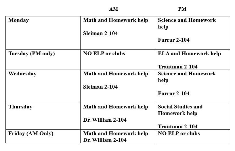 • The DHMS Extended Learning Program (ELP) is available to all students. ELP Tutoring offers our students the opportunity to extend their learning and academic success through skill strengthening, homework help, and course recovery, offering a variety of options before and/or after school to continue to support your child’s academic success.